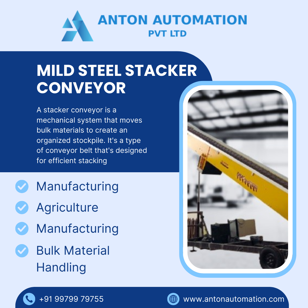 Handling bulk materials manually or with inefficient systems can quickly lead to disorganized storage, increased labor costs, and slower operations. Whether it’s aggregates, cement, grains, or industrial raw materials, improper stacking directly impacts productivity and space utilization. For industries across Vadodara—including key zones like Makarpura, Savli, Nandesari, and Waghodia—a well-designed Mild Steel Stacker Conveyor system offers a smarter, faster, and more structured solution. Anton Automation is a trusted Mild Steel Stacker Conveyor Manufacturer in Vadodara, delivering heavy-duty systems designed to simplify bulk material stacking. Built with strong engineering and durable construction, our conveyors help industries achieve organized storage and efficient material flow. Businesses searching for a reliable Mild Steel Stacker Conveyor in Vadodara Gujarat often look for strength and performance—and our solutions are built to deliver both. Our Industrial Mild Steel Stacker Conveyor Vadodara systems are engineered for continuous operation in demanding environments. From construction material plants to large-scale warehouses, these conveyors ensure smooth material transfer and controlled stacking. Companies requiring a Commercial Mild Steel Stacker Conveyor Vadodara benefit from improved storage efficiency and reduced manual handling. As a dependable Mild Steel Stacker Conveyor Manufacturer in Gujarat, Anton Automation focuses on delivering robust and application-specific solutions. Recognized among the Best Mild Steel Stacker Conveyor Manufacturer Vadodara providers, we combine structural strength with precision design. If you're searching for a Mild Steel Stacker Conveyor Near Me Vadodara, our local expertise ensures quick consultation and reliable support. Our systems include Heavy Duty Stacker Conveyor Vadodara models designed to handle continuous bulk loads. For large-scale operations, Bulk Material Stacker Conveyor Vadodara solutions ensure efficient transfer and stacking of materials. Inclined Stacker Conveyor Vadodara systems enable smooth elevation movement, while Portable Stacker Conveyor Vadodara options provide flexibility across multiple locations. High-volume operations benefit from High Capacity Stacker Conveyor Vadodara systems, ensuring faster material handling and improved throughput. Efficiency is also a priority, with Energy Efficient Stacker Conveyor Vadodara designs reducing power consumption and Low Maintenance Stacker Conveyor Vadodara systems minimizing downtime. Industry-specific applications are a key strength. Stacker Conveyor for Cement Industry Vadodara supports heavy-duty material movement, while Stacker Conveyor for Mining Industry Vadodara ensures reliable handling of aggregates and minerals. Storage facilities rely on Stacker Conveyor for Warehouse Vadodara for organized stockpiling, and production units benefit from Stacker Conveyor for Manufacturing Unit Vadodara systems that streamline internal operations. Each Material Handling Stacker Conveyor Vadodara is designed to improve workflow and reduce manual dependency. Adjustable Height Stacker Conveyor Vadodara systems allow precise stacking control, while Motorized Stacker Conveyor Vadodara ensures consistent and efficient movement. Our solutions are part of a broader Industrial Bulk Handling Conveyor Vadodara ecosystem designed to optimize material flow. As a reliable MS Stacker Conveyor Supplier Vadodara, Anton Automation provides complete support—from design to installation and service. Our Advanced Stacking Conveyor System Vadodara solutions are engineered for long-term performance and operational stability. Automation-ready features such as Stacker Conveyor with Control Panel Vadodara provide better control and monitoring. We also handle Turnkey Stacker Conveyor Project Vadodara requirements, ensuring seamless implementation from concept to commissioning. For space-efficient operations, Compact Stacker Conveyor Vadodara designs deliver performance without occupying excess area. Industries handling aggregates rely on Aggregate Handling Stacker Conveyor Vadodara systems, while Heavy Load Stacking Conveyor Vadodara solutions are built for extreme industrial conditions. Anton Automation proudly serves businesses across every Mild Steel Stacker Conveyor Manufacturer All Vadodara Area requirement. If your operations demand better bulk handling, organized storage, and reduced manual effort, now is the time to upgrade. Connect with Anton Automation today and implement a stacker conveyor system designed for strength, efficiency, and long-term industrial performance.